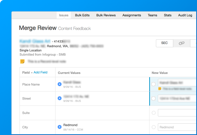 This case study is focused on Merge Review software while outlining the research and design approach applied across all internal tooling for Place Management, Tally Reports, Fill Rate Reports, Corporation Management UI, Feedback UI, and a Version History UI. All platform tooling work was in collaboration with Data Processing, Engineering, Product Management, and Support teams.